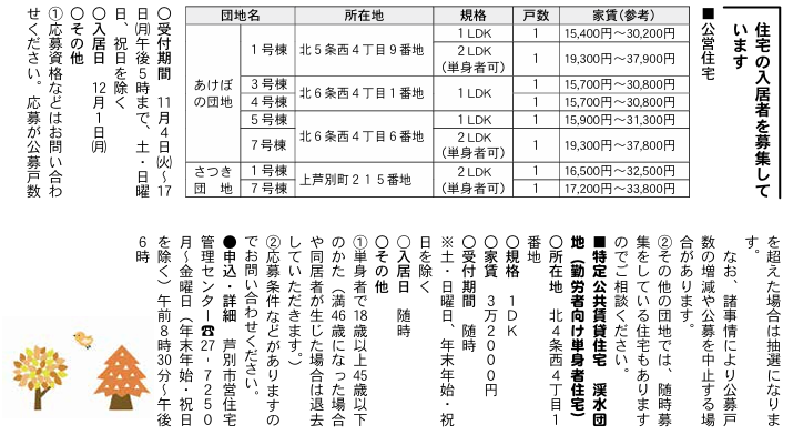 また、「勤労単身者向け住宅」(1DK 32,000円/月 18~45歳限定)