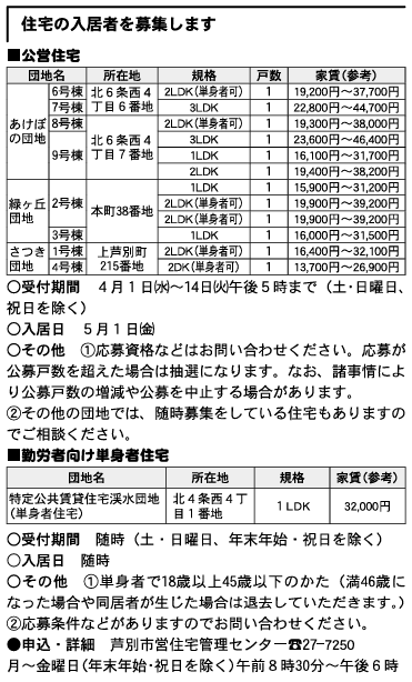 また、「勤労単身者向け住宅」(1DK 32,000円/月 18~45歳限定)